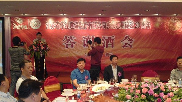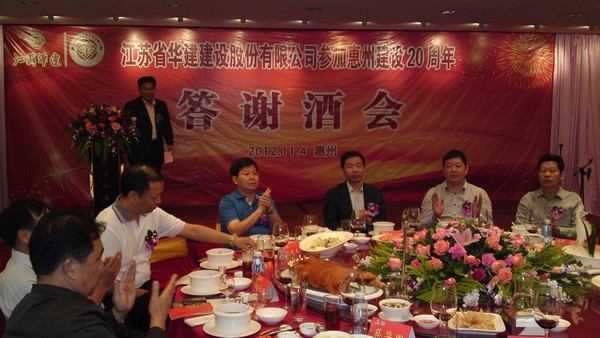 11月4日,公司在惠州凱賓斯基酒店王子飯店隆重召開參加惠州建設(shè)20周年慶典暨答謝酒會(huì),公司副董事長、總經(jīng)理宗有農(nóng)主持酒會(huì)并作開場致辭。惠州市有關(guān)政府部門、部分合作方企業(yè)的負(fù)責(zé)人,華建聯(lián)盟成員單位負(fù)責(zé)人,公司董事、監(jiān)事和高管等130余人出席慶典。惠州公司總經(jīng)理華恒榮介紹了公司參加惠州建設(shè)20年的有關(guān)情況。惠州市工商聯(lián)主席、公司戰(zhàn)略合作伙伴恒宇實(shí)業(yè)集團(tuán)公司董事長楊滿芳代表合作方發(fā)言,惠州市住房和城鄉(xiāng)規(guī)劃建設(shè)局副局長陳訓(xùn)政代表政府主管部門致辭,分別對(duì)江蘇華建進(jìn)駐惠州施工、參加惠州建設(shè)20周年表示祝賀。公司董事長陸金龍代表公司總部對(duì)惠州市有關(guān)政府部門、相關(guān)合作方和社會(huì)各界人士給予公司的關(guān)心和支持表示誠摯的感謝,并表達(dá)了進(jìn)一步加大支持力度、加強(qiáng)戰(zhàn)略合作、加快科學(xué)發(fā)展的意愿。