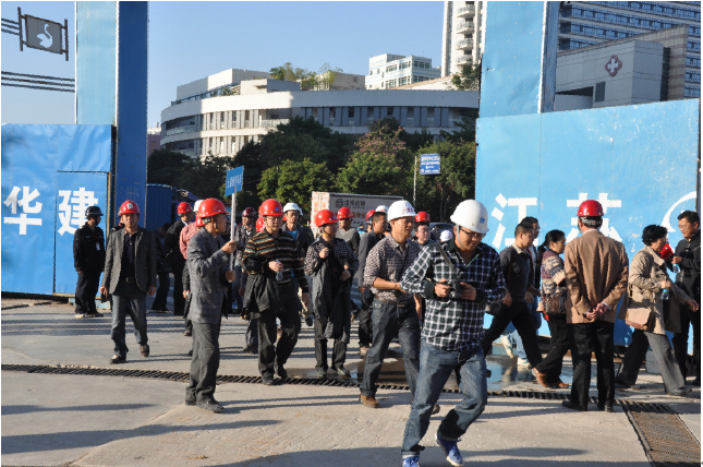 會議聽取了江蘇華建副總經理、惠州公司總經理華恒榮關于惠州公司20多年的發展概況、大隆·財富廣場項目的整體施工情況的匯報,觀看了公司30周年紀錄片和項目施工現場實錄視頻,接著進行了工地現場檢查評審。
