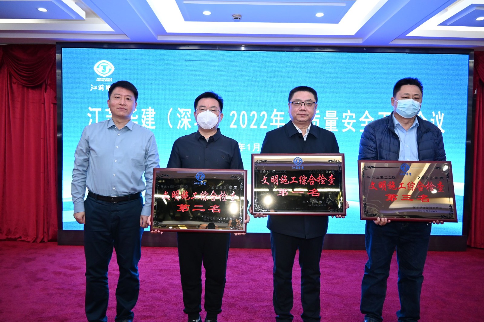 會議表彰了2022年下半年先進(jìn)項目經(jīng)理部、安全生產(chǎn)、文明施工檢查綜合評分前三名和“安全生產(chǎn)月”活動前三名,公司總經(jīng)理吳碧橋為獲獎工程處頒發(fā)了榮譽(yù)獎牌。