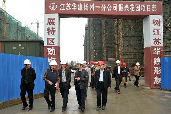 5月5日,陸金龍董事長一行赴公司在揚(yáng)首個(gè)土建項(xiàng)目振興花園檢查指導(dǎo)安全生產(chǎn)工作。在聽取了項(xiàng)目部相關(guān)同志對安全生產(chǎn)情況的具體介紹后,陸總指出,安全生產(chǎn)大于天,各級管理人員要在思想上高度重視,千萬不能有松懈麻痹思想,要對安全工作加大投入,在組織上層層落實(shí),積極開展各類安全培訓(xùn)教育,切實(shí)把安全工作做到位。隨后,陸總一行人到施工現(xiàn)場參觀檢查,對各項(xiàng)工作表示滿意。公司副總經(jīng)理吳士茂、揚(yáng)州一分公司李幼杰、王志明等領(lǐng)導(dǎo)陪同參加。