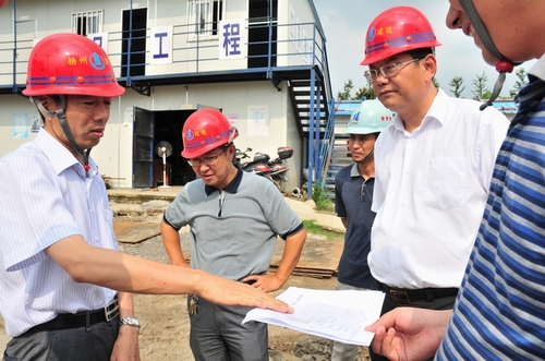 陳揚副市長視察建設大廈工地 時間:2011-08-12 5142 8月12日下午,揚州市政府副市長陳揚、市建設局局長楊正福一行前往江蘇華建代建的揚州建設大廈暨規劃展覽館、市民中心項目工地現場視察。揚州建工控股公司、江蘇華建董事長陸金龍陪同視察,并將工程施工進展情況向陳副市長作了簡要匯報。陳副市長對建設大廈總體施工進展表示滿意,并提出希望所有參建單位精心組織,科學管理,確保這一政府重點工程建設順利推進。公司領導程杰等一起陪同視察。