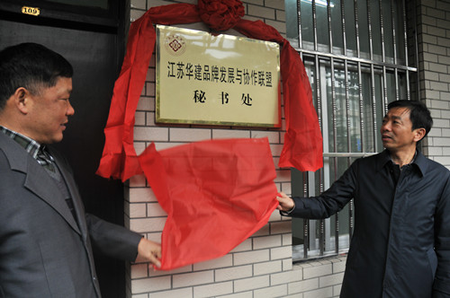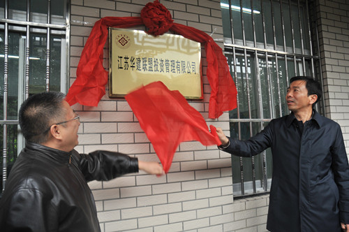 12月8日上午,華建聯盟秘書處和聯盟投資管理有限公司在揚州舉行了隆重的揭牌儀式,華建聯盟首任主席、江蘇華建董事長陸金龍與華建聯盟投資公司董事長、江蘇華建副總經理程杰首先為聯盟投資公司揭牌,然后陸主席又和聯盟主席團成員、江蘇華建監事會主席吳士茂共同為華建聯盟秘書處揭牌。