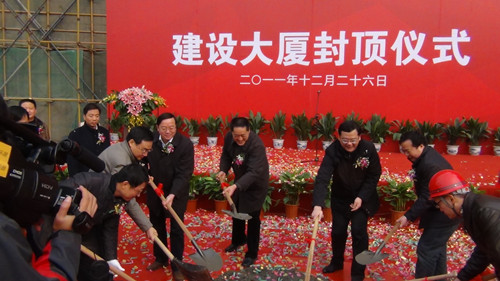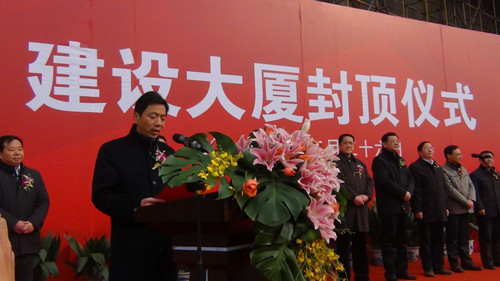 揚州建工控股有限責任公司董事長、黨委書記陸金龍董事長在封頂儀式上致辭。他說,建設大廈是體現市委、市政府民生城建理念的標志性項目之一,其中的城市規劃展覽館是提升城市品質、展示城市未來宏偉藍圖、宣傳城市美好形象的重要陣地,市民中心是市民活動、交流、服務和區域文化展示的固定場所,這個項目的建設對進一步提升城市基礎設施建設水平,完善城市功能,提升城市品質,建設“三個揚州”都具有深遠和重要的意義。項目自2010年5月2日開工以來,作為項目投資建設主體,建工控股公司認真貫徹落實市委、市政府的指示精神,及時選派精干力量,切實優化建設方案,合理調配資源,主動協調關系,確保項目建設高效、有序、廉潔推進。承擔建設代理任務的江蘇華建和承擔施工任務的揚建集團、揚安集團等單位發揚市直施工企業敢打善拼、精益求精的優良作風,精心組織,精心施工,確保了質量、工期和現場文明,體現了我市建筑精英的實力和水平。陸董事長指出,工程順利封頂標志著項目建設進入了一個新的階段,他希望項目管理團隊和全體建設單位進一步樹立大局意識、責任意識和精品意識,繼續加強與相關部門單位的協調配合,克服一切困難,瞄準既定目標,努力把建設大廈建成領導放心、群眾滿意、業主認可的優質工程、民心工程、標志工程,為精致揚州增添一抹亮麗的風景。