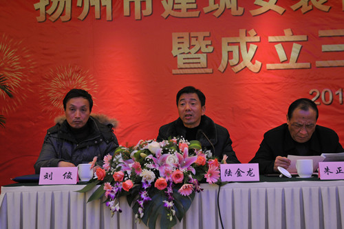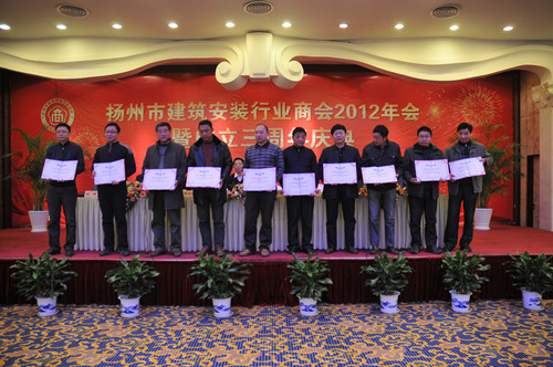 12月14日下午,揚州市建筑安裝行業商會在揚州西園飯店舉辦2012年會暨成立三周年慶典大會,市人大副主任、市工商聯主席、市總商會會長孫永如,市政府副市長聞道才,市政協原副主席、市建安商會名譽會長朱正海,市工商聯黨組書記、副主席、市總商會副會長趙振東,市工商聯副主席吳鈞等領導出席,市城建局、民政局、工商聯相關部門負責人,相關兄弟商會、協會負責人以及建安商會所有會員單位負責人等近120人參加會議,市建安商會會長陸金龍主持。