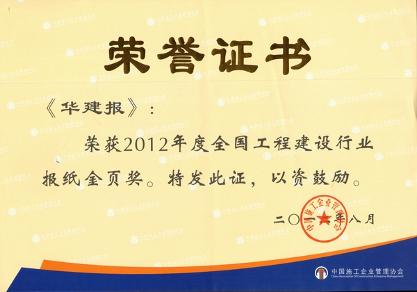 《華建報》連續三年榮獲“金頁獎” 時間:2012-08-14 4311 8月9日,中施企協發布《關于表彰2012年度全國工程建設行業“金頁”報刊和“銀頁”報刊的決定》,公司主辦的《華建報》連續第三年被評為全國工程建設行業 “金頁”報刊。《華建報》創刊五年來,積極發揮窗口作用、平臺作用,以反映公司在技術創新、管理創新、體制創新和市場開拓等方面的新動態、新經驗和新成果為主要內容,在宣傳企業形象、凝聚員工精神、塑造企業文化和促進行業交流等方面起到了積極顯著作用,受到社會各界好評。