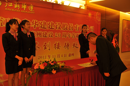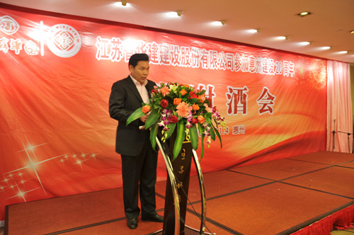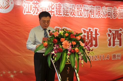 11月4日,公司在惠州隆重舉辦參加惠州建設(shè)20周年答謝酒會,副董事長、總經(jīng)理宗有農(nóng)主持并作開場致辭。惠州市有關(guān)政府部門、部分合作方企業(yè)的負(fù)責(zé)人,華建聯(lián)盟成員單位負(fù)責(zé)人,公司董事、監(jiān)事和高管等130余人出席酒會。惠州公司總經(jīng)理華恒榮介紹了公司參加惠州建設(shè)二十年的有關(guān)情況。惠州市工商聯(lián)主席、恒宇實業(yè)發(fā)展公司董事長楊滿芳代表合作方發(fā)言,惠州市住房和城鄉(xiāng)規(guī)劃建設(shè)局副局長陳訓(xùn)政代表政府主管部門致辭,分別對江蘇華建進(jìn)惠施工二十周年表示祝賀。公司董事長陸金龍代表總部對惠州市有關(guān)政府部門、相關(guān)合作方和社會各界人士給予公司的關(guān)心和支持表示誠摯的感謝,并表達(dá)了進(jìn)一步加大支持力度、加強戰(zhàn)略合作、加快科學(xué)發(fā)展的意愿。