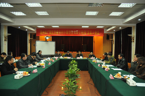 元月13日,揚州市廣陵區華建農村小額貸款有限公司(籌)發起人會議在揚州召開。江蘇華建董事長陸金龍、監事會主席吳士茂、副總經理程杰、紀委書記錢啟明及小貸公司各發起人代表和籌建小組成員參加會議,廣陵區財政局副局長丁永榮、市金融辦銀行與保險處處長沈一進應邀出席會議。程杰副總經理主持會議。