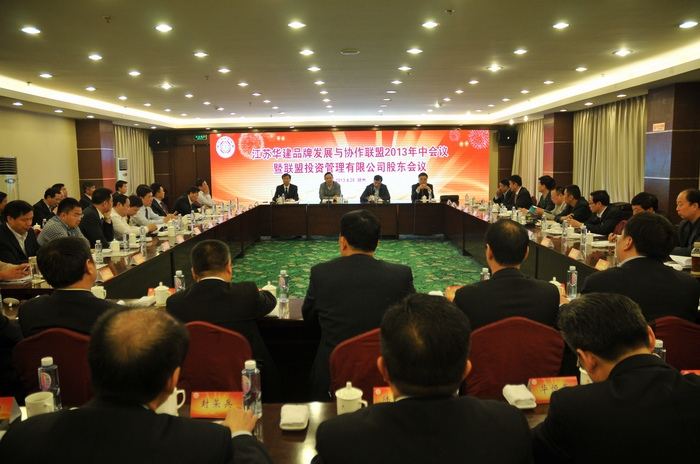 4月28日,江蘇華建品牌發展與協作聯盟2013年中會議暨聯盟投資管理有限公司股東會議在揚州召開,19個聯盟成員、4個聯盟觀察員單位負責人和聯盟投資管理公司全體股東及經營層參加會議,江蘇華建副董事長、總經理宗有農主持會議,聯盟主席陸金龍作了講話,揚州市人民政府副市長聞道才、副秘書長侯承海出席會議。