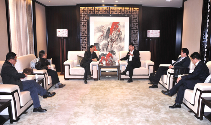 陸金龍董事長與九鼎投資高管洽談項目合作 時間:2013-11-21 5694 11月20日,陸金龍董事長在公司企業展示中心會見了昆吾九鼎投資管理有限公司合伙人岳錦、副總裁朱成彥等高管一行。 在展示中心會客廳,雙方互相介紹了各自公司的發展概況,就西安曲江項目的合作進行了洽談,同時雙方還對企業的管理理念、分配機制以及投融資等方面進行了交流。揚州現代金融投資集團副董事長、總經理劉研、公司高管程杰、陸俊等陪同參加。