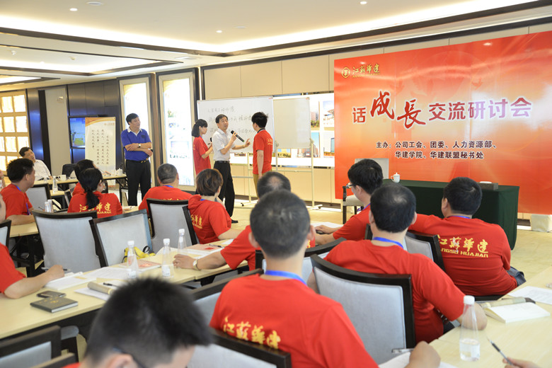 與會人員首先參觀了企業展示中心,合唱《華建之歌》,共讀《我要用全身心的愛擁抱今天》,身心得到了綻放。隨后,與會人員根據不同層次與類別分成了四大組,6名青年員工代表上臺分享了自己的成長經歷,提出了成長過程中的困惑和未來職涯發展目標。