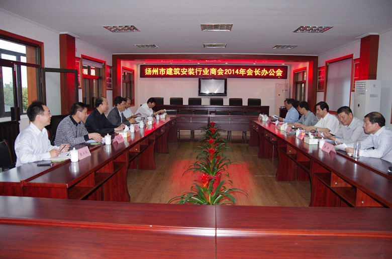 10月10日下午,揚州市建筑安裝行業(yè)商會2014年會長辦公會在江蘇儀建集團會議室召開,11家會長和副會長單位的負責人參加會議,陸金龍會長主持會議,市委統(tǒng)戰(zhàn)部副部長、市工商聯(lián)黨組書記、常務副主席趙振東出席會議。
