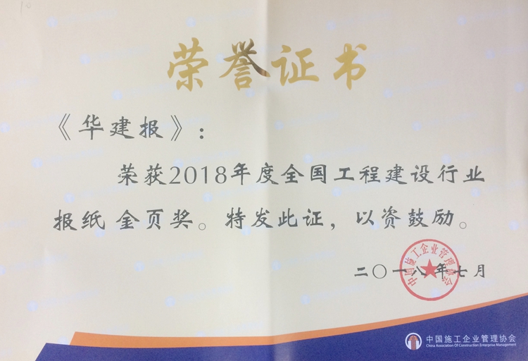 《華建報》再獲“全國工程建設行業報紙金頁獎” 時間:2018-07-23 4633 7月18日至20日,中國施工企業管理協會2018年度工程建設企業文化論壇暨通聯員工作會議在蘇州召開。公司內刊《華建報》再度獲評“2018年度全國工程建設行業報紙金頁獎”,公司翟法寶獲評“2018年度中國施工企業管理協會優秀聯絡員”。