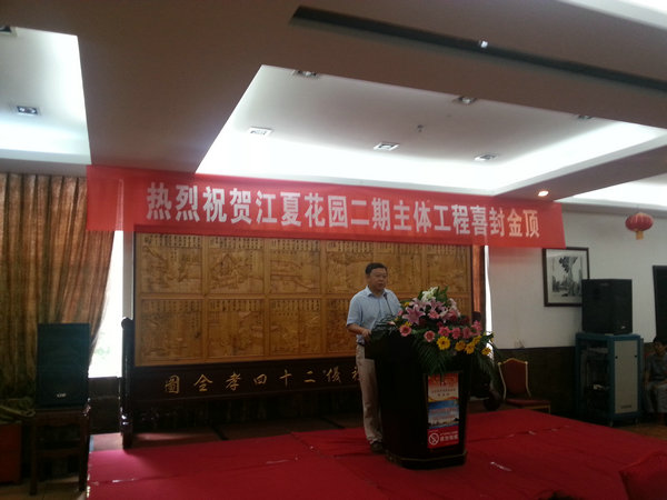 湖北公司江夏花園二期項目順利封頂 時間:2015-06-30 2882 6月28號,是湖北分公司值得慶祝的日子:公司在武漢市承建的第一個民用住宅江夏花園二期工程順利封頂。該工程項目地處居民集中區,其施工空間狹小,工期緊迫。湖北公司組織強有力的項目管理團隊,精心籌備,克服各種困難,保質保量的完成了工程既定目標。 公司副總經理、海南區域公司總經理王宏出席封頂儀式并致辭,對各參建單位表示感謝,對項目部取得的成績表示肯定并希望大家再接再厲,確保順利竣工。