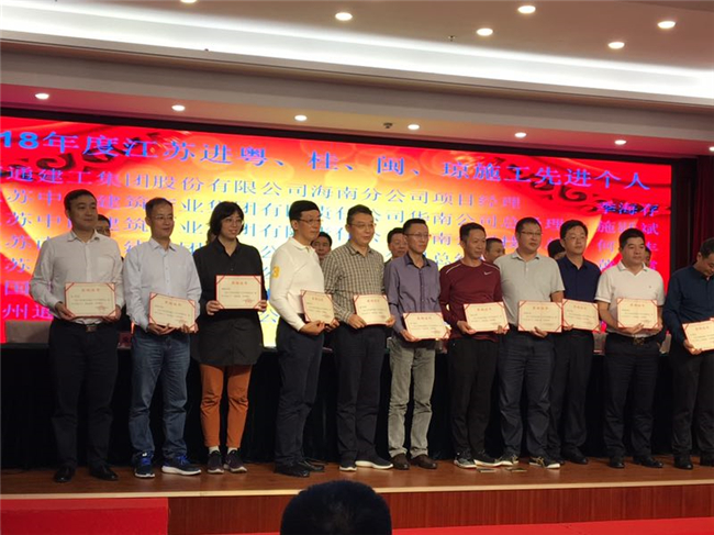 海南公司喜獲江蘇出省施工多項榮譽 時間:2019-03-24 3224 3月22日,江蘇省住建廳南方辦在南寧召開2019年江蘇建筑業南方區工作會議。會上,江蘇華建海南分公司、湖北分公司被江蘇省住建廳表彰為2018年度出省施工先進集體;高家馴、杜宇、吳潤年、劉遠被表彰為2018年度出省建筑施工先進個人;喬繼承、湯小慶、陳超分別被江蘇省政府駐深辦表彰為2018年度江蘇進粵、桂、閩、瓊經營財務、新聞報道、施工質量先進個人。 會上江蘇華建深圳分公司、珠海分公司、惠州分公司等兄弟單位同時被表彰為先進集體,另有一批先進個人分別受到表彰。(辦公室)