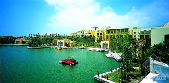 該建筑群具有獨特的景觀與風格,生態環境和諧完美,以海洋溫泉為核心,由兩座五星級大酒店、神秘島主題樂園、漁人碼頭、夢幻劇場、加勒比海岸、高爾夫項目、休閑垂釣區以及自駕車營地組成,是中國目前功能最齊全、綜合配套最完善的超大型旅游休閑度假區和國際會議中心。20074月,海泉灣度假區被國家旅游局授予全國首家國家旅游休閑度假示范區稱號。