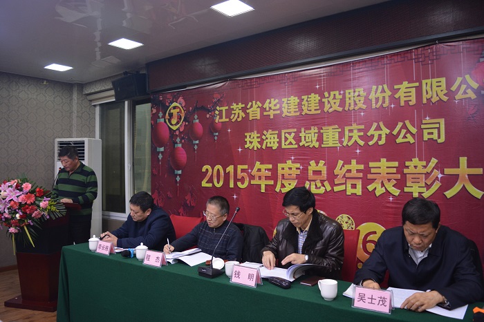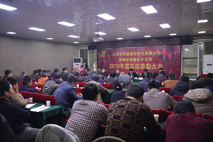 1月20日下午,重慶分公司組織召開2015年度總結表彰大會,江蘇省住建廳駐西南辦事處主任錢明,公司總部領導吳士茂、程杰、李長棟等出席,各工程處、項目部代表及公司機關全體近100人參加會議。繆國樞總經理主持會議。