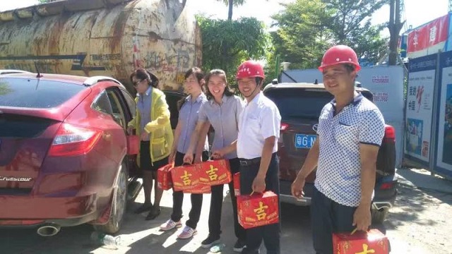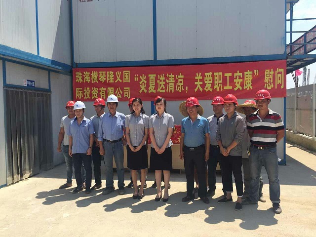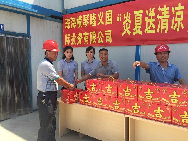 炎炎夏日送清涼 時間:2016-08-01 4018 7月30日上午,珠海分公司橫琴隆義廣場項目部工地熱浪朝天,機聲隆隆,人來人往,一派繁忙景象。一支由江蘇華建直五項目部和橫琴隆義投資公司共同組成的“送清涼”小分隊也在工地上奔忙著,項目經(jīng)理姚寧與投資公司負責人王艷、許珂等正在將一箱箱王老吉飲料有條不紊地送到建筑工人手中,讓廣大一線職工在炎炎烈日下感受到陣陣清涼。