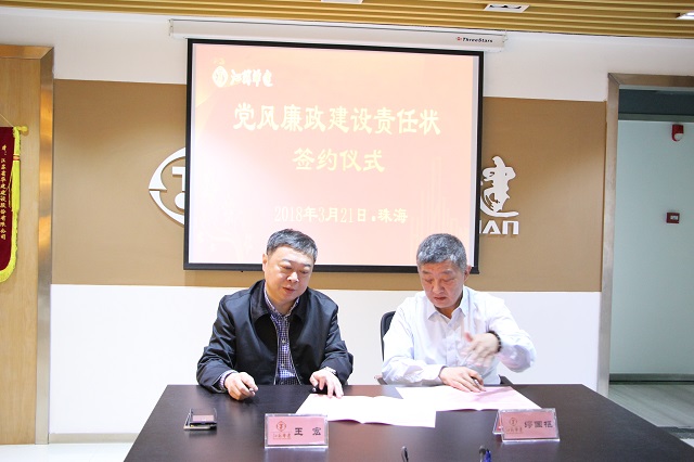 在珠期間,公司黨委書記王宏與珠海區(qū)域公司黨委書記繆國樞簽訂《黨風廉政建設(shè)責任狀》。