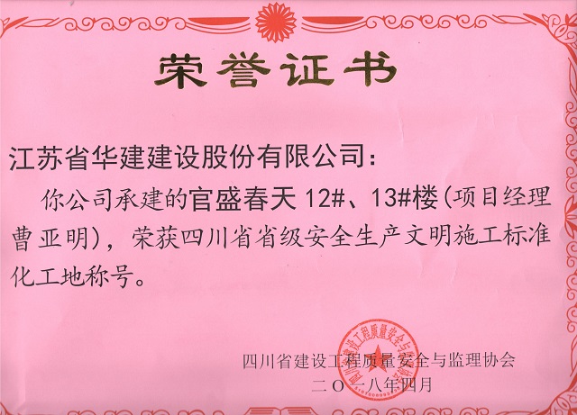 重慶分公司2項目獲評“四川省安全生產文明施工標準化工地” 時間:2018-04-20 3041 4月18日,重慶分公司項目創優再獲新成果,公司承建的岳池縣城東新區棚戶區改造項目(東城明珠建設點)3#、4#及地下室、官盛春天12#、13#樓被四川省建設工程質量安全與監理協會評為“四川省省級安全生產文明施工標準化工地”。至此,重慶分公司獲省級標化工地獎項已達3項。