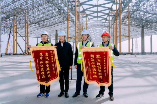 4月2日上午,揚州泰州國際機場二期擴建工程航站樓舉行主體封頂儀式,江蘇華建黨委委員、副總經...