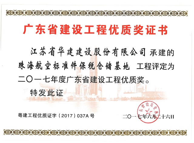 珠海航空標準件保稅倉儲基地2017年度廣東省建設工程優質獎