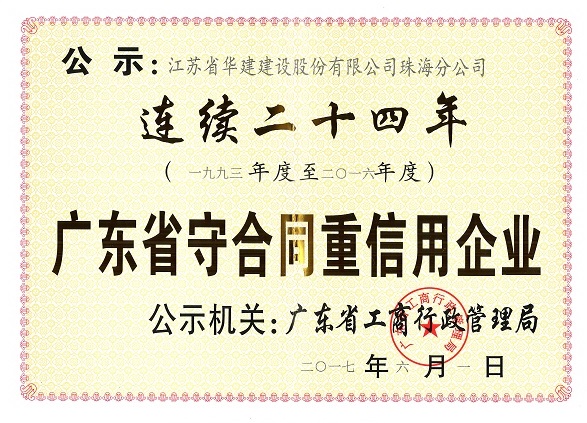2016廣東省連續24年守合同重信用企業