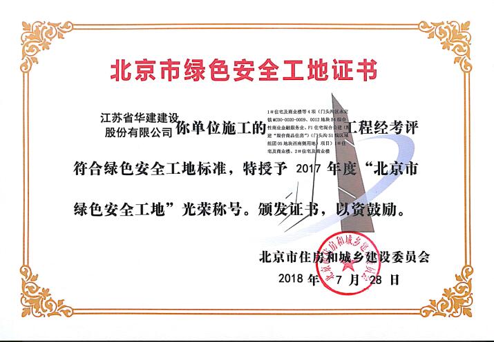 北京公司兩項工程獲北京市綠色安全工地 時間:2018-11-11 3685 近日,從北京市住房和城鄉建設委員會傳來喜訊,由北京公司總包承建的1#住宅及商業樓等4項(1#住宅及商業樓、2#住宅及商業樓)和1#住宅及商業樓等4項(3#限價商品房及商業樓、8#限價商品房及商業樓)兩個標段項目榮獲 “北京市綠色安全工地”光榮稱號,并獲頒證書。