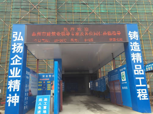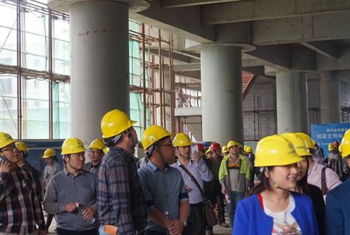 4月21日下午,江蘇華建蘇北分公司承建的泰州金融服務中心現場,彩旗獵獵,熱鬧非凡,泰州市創精品工程觀摩會隆重舉行,泰州市建工局副局長王京陵以及泰州市各市(區)建筑業主管部門工程創優負責人、建筑業協會負責人、全市二級以上資質企業總工程師、技術負責人、創優企業總工程師、項目經理、技術負責人等共計400人參加了觀摩活動,與會人員對江蘇華建在建設金融服務中心興業大廈過程中創下了江蘇泰州地區多個之最表示了濃厚興趣,多個之最包括:高度最高(地上58層、設計高度: