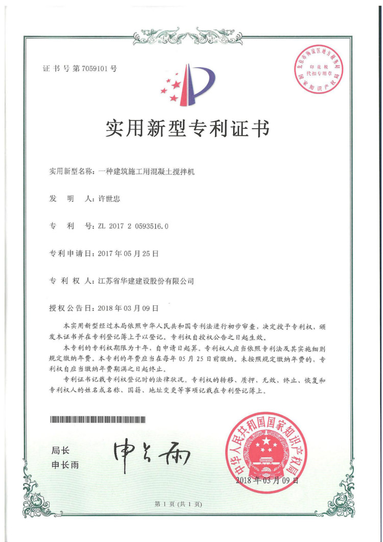 江蘇華建再獲1項發明專利、3項實用新型專利 時間:2018-06-06 3138 日前,從國家知識產權局傳來喜訊,江蘇華建上海區域公司發布的《一種用于砌體結構墻體后開洞的夾緊梁裝置及其施工方法》獲得發明專利授權(專利號:ZL201610262053.X),《一種建筑板材角磨機》(專利號:ZL201720592798.2 )、《一種建筑施工用鋼筋切斷機》(專利號:ZL201720593659.1 )、《一種建筑施工用混凝土攪拌機》(專利號:ZL201720593516.0 )獲得實用新型專利授權。