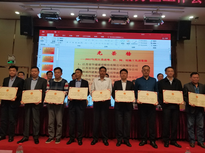 惠州公司獲評“2017年度江蘇出省施工先進集體” 時間:2018-03-26 3327 3月24日,2018年度江蘇建筑業南方區工作會議在深圳召開,會議表彰了一批江蘇出省施工先進集體及先進個人。惠州公司被江蘇省住房和城鄉建設廳評為“2017年度江蘇出省施工先進集體”,總經理周群利、技術處主任陳申高被江蘇省住房和城鄉建設廳評為“2017年度江蘇出省施工先進個人”;史泰龍、孔祥明、王興東分別被江蘇省人民政府駐深圳(廣州)辦事處表彰為2017年度江蘇進粵、桂、閩、瓊施工質量安全、經營財務和新聞報道先進個人。