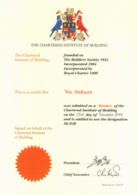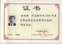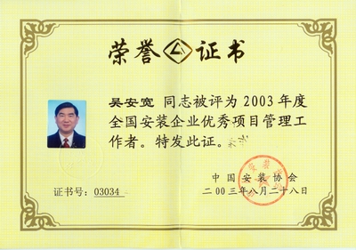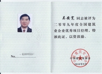 2002年開始他被聘為北京市建設(shè)工程評(píng)標(biāo)專家;2003年獲“中國(guó)安裝企業(yè)優(yōu)秀項(xiàng)目管理工作者”稱號(hào),2004年獲全國(guó)工程建設(shè)“優(yōu)秀項(xiàng)目經(jīng)理”稱號(hào);2006年獲全國(guó)安裝企業(yè)優(yōu)秀項(xiàng)目經(jīng)理; 2007年獲揚(yáng)州市國(guó)資委黨委頒發(fā)的“三強(qiáng)”黨支部書記稱號(hào);2008年12月獲得中共北京市外地在京施工企業(yè)委員會(huì)頒發(fā)的在奧運(yùn)工程建設(shè)中的優(yōu)秀共產(chǎn)黨員;2009年獲“江蘇省建筑業(yè)企業(yè)杰出建造師”和中國(guó)建筑業(yè)協(xié)會(huì)頒發(fā)的“全國(guó)建筑業(yè)企業(yè)優(yōu)秀項(xiàng)目經(jīng)理”榮譽(yù)稱號(hào)。2009年他還參加了英國(guó)皇家特許建造師(CIOB)國(guó)際執(zhí)業(yè)資格認(rèn)證培訓(xùn)。目前,他已順利通過(guò)考試,獲得英國(guó)皇家“英國(guó)特許建造師”資格。