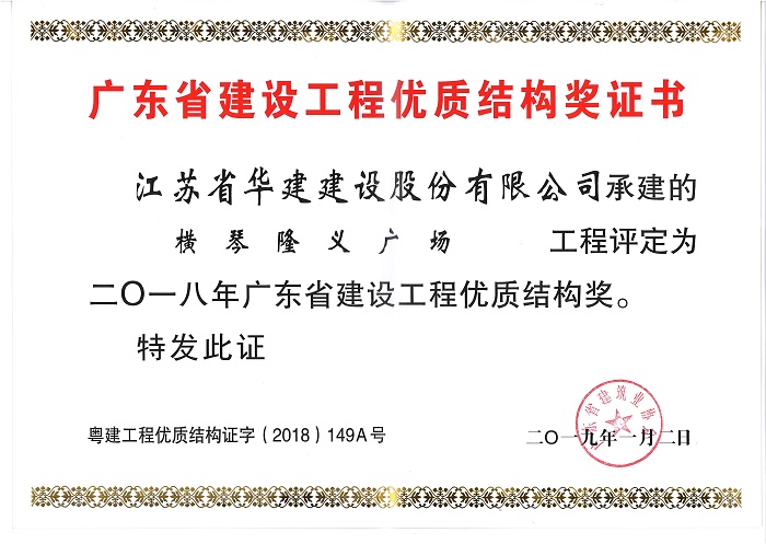 公司3個項目喜獲多項省級表彰 時間:2019-04-10 3590 近日,廣東省建筑業(yè)協(xié)會、廣東省建筑安全協(xié)會分別發(fā)文表彰了一批優(yōu)質(zhì)結(jié)構(gòu)工程、綠色施工示范工程和安全文明工地,公司3個項目榮列榜單。其中,陽光馬德里、橫琴隆義廣場、華策國際大廈均被表彰為二〇一八年廣東省建設工程優(yōu)質(zhì)結(jié)構(gòu)獎,華策國際大廈被授予廣東省建筑業(yè)綠色施工示范工程稱號,橫琴隆義廣場被評為2017年廣東省房屋市政工程安全生產(chǎn)文明施工示范工地。