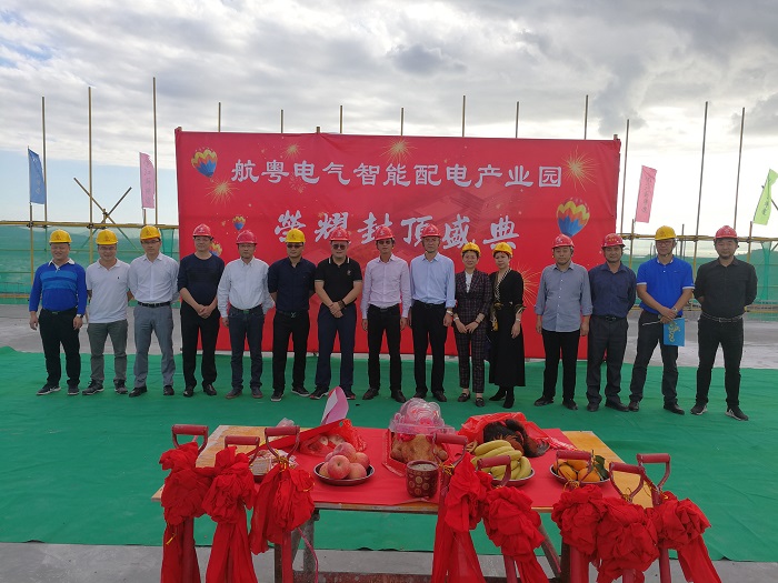 12月18日下午,公司承建的航粵電氣四期項目喜封金頂,珠海分公司總經理呂方達、副總經理周學軍、第八項目部負責人袁紅如和富山管委會蔣道平主任、富山經貿局劉洋局長、廣東航粵電氣有限公司楊建豐董事長等出席封頂儀式。